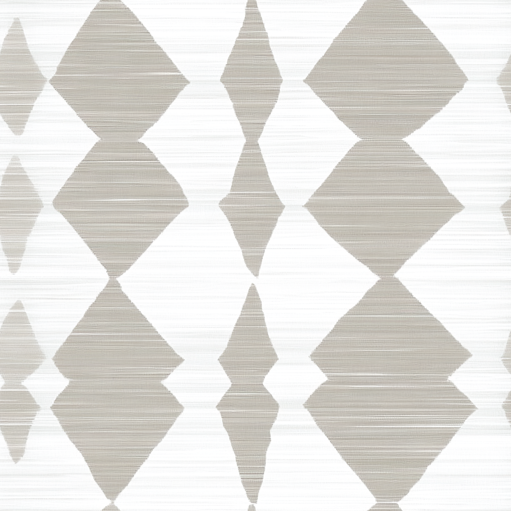 Soothing and sophisticated, Kairo Wallpaper brings a subtle geometric elegance to your walls. Featuring soft taupe diamond shapes with a fabric-like effect. Set against a crisp white backdrop, it strikes the perfect balance between modern minimalism and organic warmth; ideal for serene bedrooms, cozy living spaces, or refined entryways.