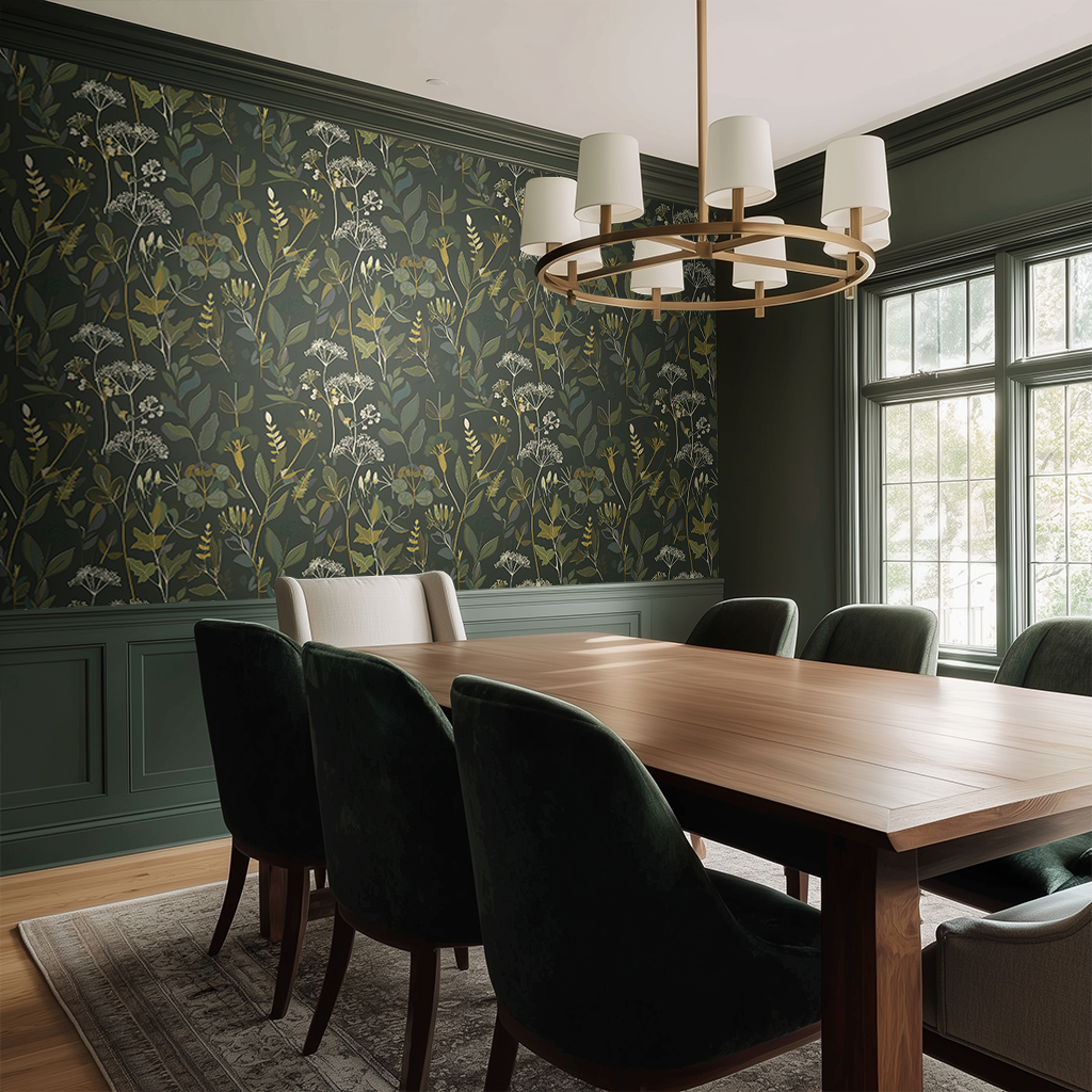 Our Mattie Wallpaper features a dark background for a vibrant array of wildflowers and leaves. The intricate pattern brings a touch of natural beauty and lushness to any space. Durable, easy to apply, and striking in every way, it's the ideal choice for a statement wall or a full-room ensemble. Â