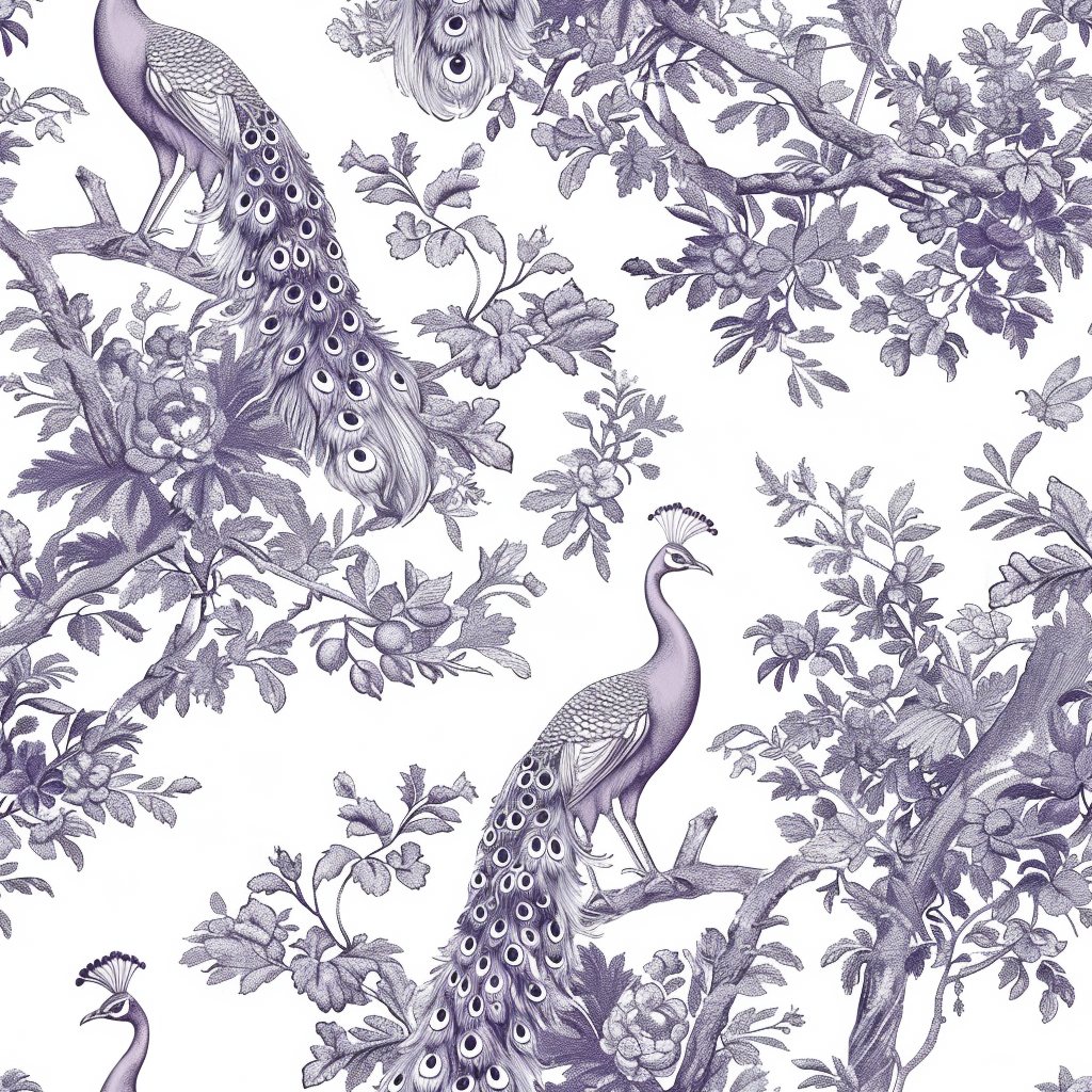 Maxfield: Transport yourself to a serene garden with our blue and white toile wallpaper adorned with delicate peacocks, offering a classic yet whimsical charm that adds grace and tranquility to any room.